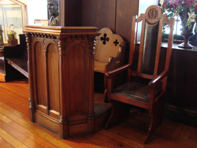 The Church of the Vow is the original part of the museum, and houses exhibitions dealing with the history of the Church, the Vow the Voortrekker made before the Battle of Bloodriver/ Ncome, and the lifestyle of the Voortrekkers. The original pulpit, made by 2 German Craftsmen in 1840, is still on display.
